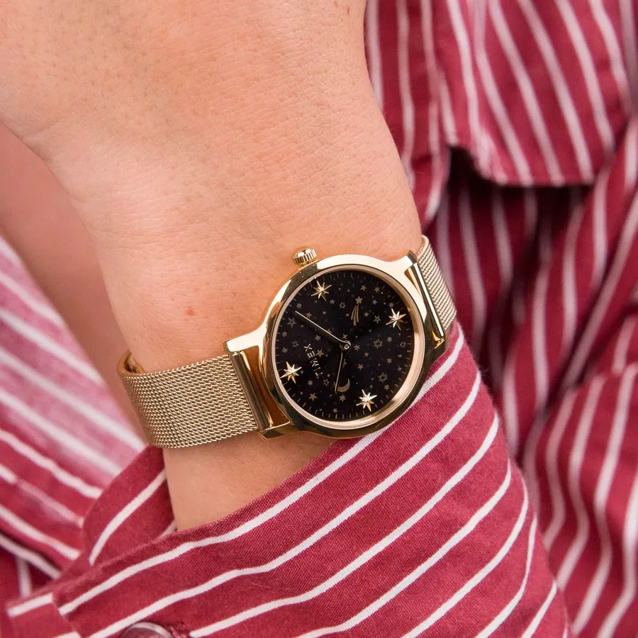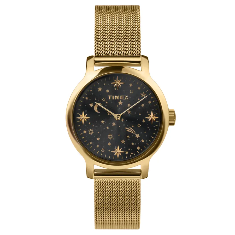 ساعت تایمکس TW2W21500 یک ساعت زنانه است که توسط شرکت آمریکایی تایمکس طراحی شده است. این ساعت جذاب با سبک طراحی کلاسیک و روزمره، به راحتی با انواع لباسها هماهنگ میشود. ترکیب رنگ مشکی و طلایی به کار رفته در این ساعت، زیبایی و جذابیت آن را دوچندان کرده است. صفحه نمایش آن با ستارهها و تزئینات کوچک و بزرگ طلایی رنگ، جلوهای خاص و منحصر به فرد به ساعت بخشیده است. این ساعت بینظیر و لاکچری، انتخابی مناسب برای خانمهای با سلیقه است که به دنبال یک اکسسوری زیبا و کاربردی هستند. بند این ساعت از جنس استیل ساخته شده که هم دوام بالایی دارد و هم راحت است. بدنه آن از جنس برنج است که به کیفیت و زیبایی ساعت افزوده است. ساعت تایمکس TW2W21500 با استفاده از موتور کوارتز کار میکند که دقت و عملکرد عالی را ارائه میدهد. منبع انرژی این ساعت باتری است که به راحتی قابل تعویض میباشد. این ساعت نه تنها زیباست، بلکه عملکرد بالای آن نیز آن را به یک انتخاب بینظیر تبدیل کرده است.