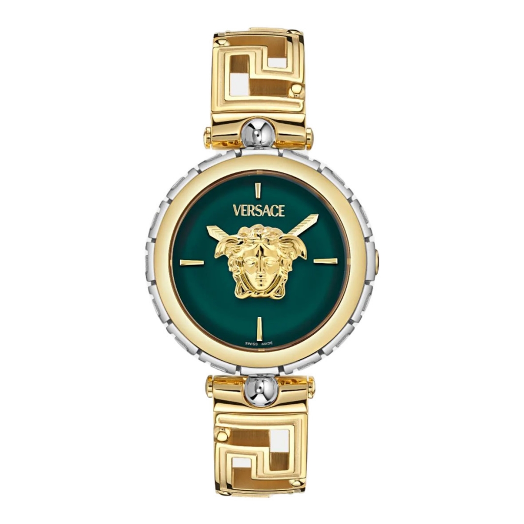 ساعت ورساچه VE0B00325 یک ساعت زنانه شیک و رسمی است که توجه همگان را جلب می کند. طراحی این ساعت به گونه ای است که می تواند به راحتی با انواع لباس ها هماهنگ شود. صفحه نمایش سبز تیره آن زیبایی و جذابیت خاصی دارد که درخشش ساعت را افزایش میدهد. بند استیل نقرهای و طلایی این ساعت، ترکیبی از زیبایی و استحکام را به نمایش می گذارد. جنس بدنه و بند این ساعت از استیل ضد حساسیت ساخته شده است که موجب راحتی در استفاده می شود. این ویژگی به کاربران این امکان را می دهد که بدون نگرانی از آلرژی، ساعت را به مدت طولانی استفاده کنند. ترکیب رنگ سبز، طلایی و نقره ای، این ساعت را به یک ساعت لاکچری و منحصر به فرد تبدیل کرده است. ساعت ورساچه VE0B00325 در عین زیبایی، بسیار مقاوم و قوی نیز هست و می تواند در شرایط مختلف استفاده شود.